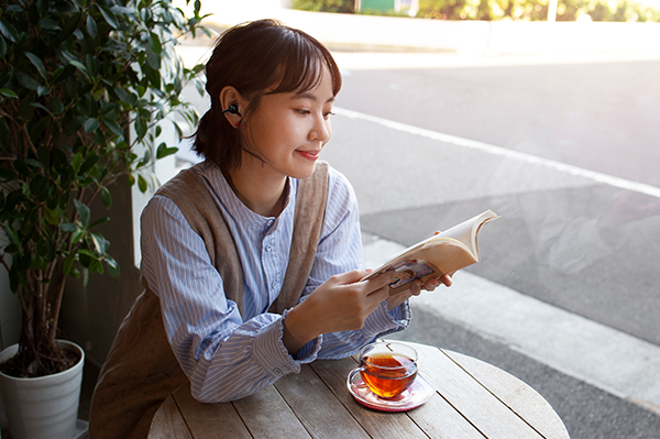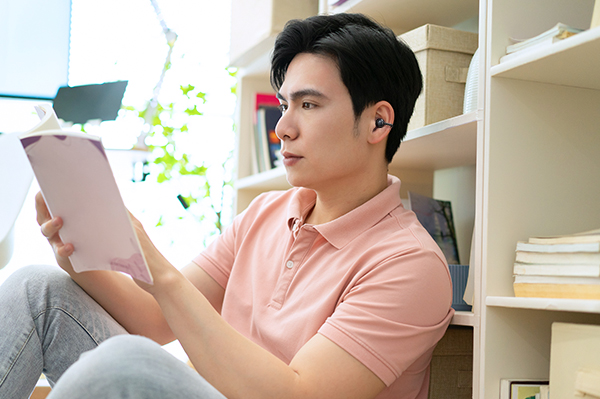 また、音漏れを抑制するために最適化されたハウジング構造と、瞬時に音量を制御できる「マナーモード」機能を搭載。ワンタッチで周囲環境に応じた音量へ切り替えることができ、図書館やオフィスなど静寂が求められる空間でも、スマートに対応します。