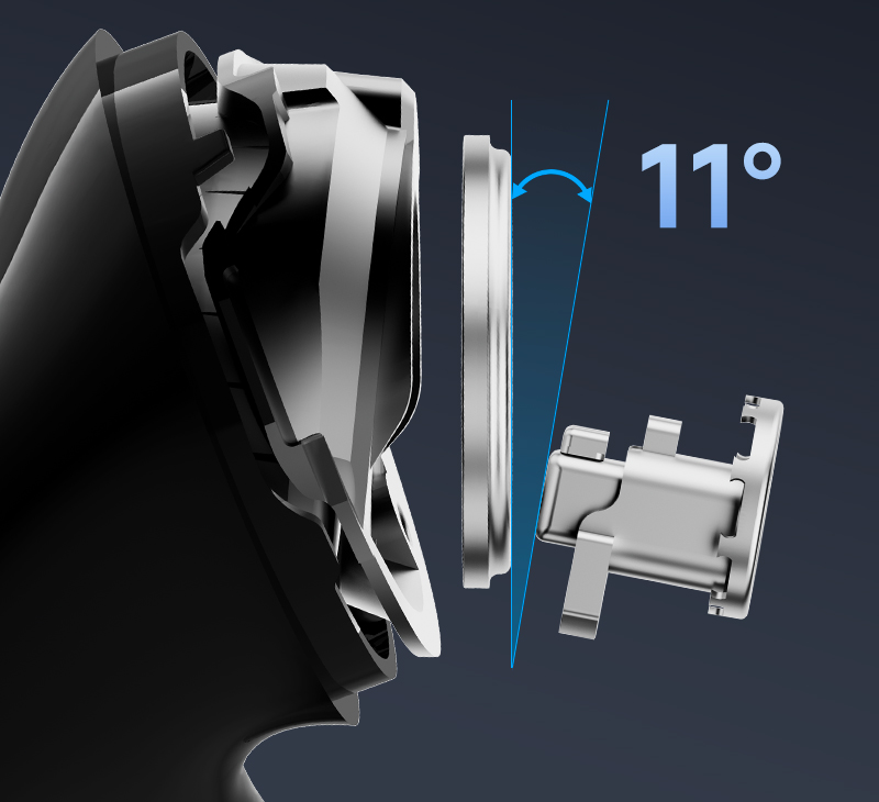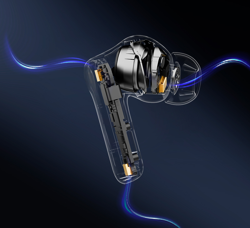 ハイブリッドドライバーシステムでは、ダイナミックドライバーとバランスド・アーマチュア(BA)ドライバーの間に生じる磁気干渉が、BAドライバーの高音域レスポンスを低下させることがあります。そのため、両ドライバーの配置角度は高音の再現性を左右する重要な要素です。EarFunでは、数多くのテストを重ねた結果、ダイナミックドライバーとBAドライバーの間に11度の角度を設けることが理想的だという結論に至りました。この精密な設計により、高音域の減衰を最小限に抑え、透明感と明瞭さに優れたサウンドを実現しています。