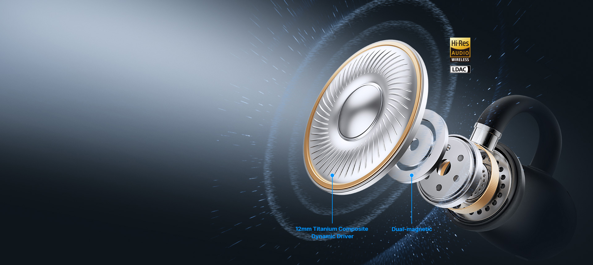 The EarFun Clip 2 redefines open-ear audio by combining an upgraded 12mm dual-magnetic titanium composite driver with proprietary BassSurge™ technology for deep, thunderous bass and intricate layering. Certified for Hi-Res Audio Wireless with LDAC™ support, it delivers a high-fidelity, immersive listening experience with three times the data transmission of standard Bluetooth.